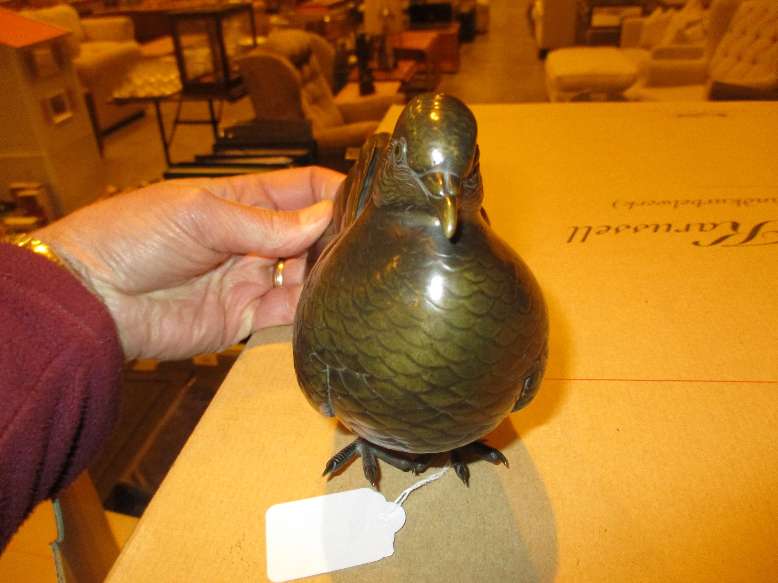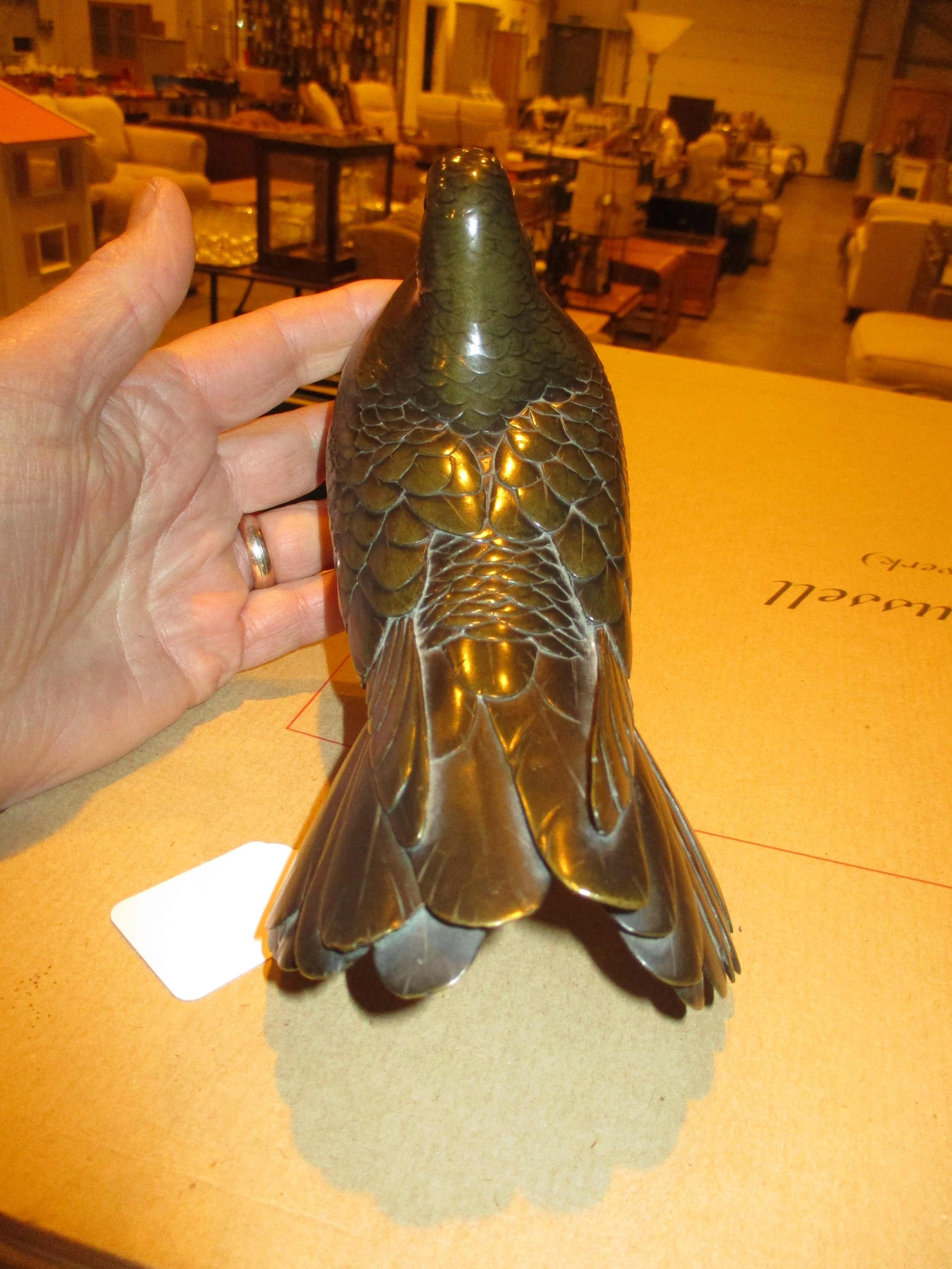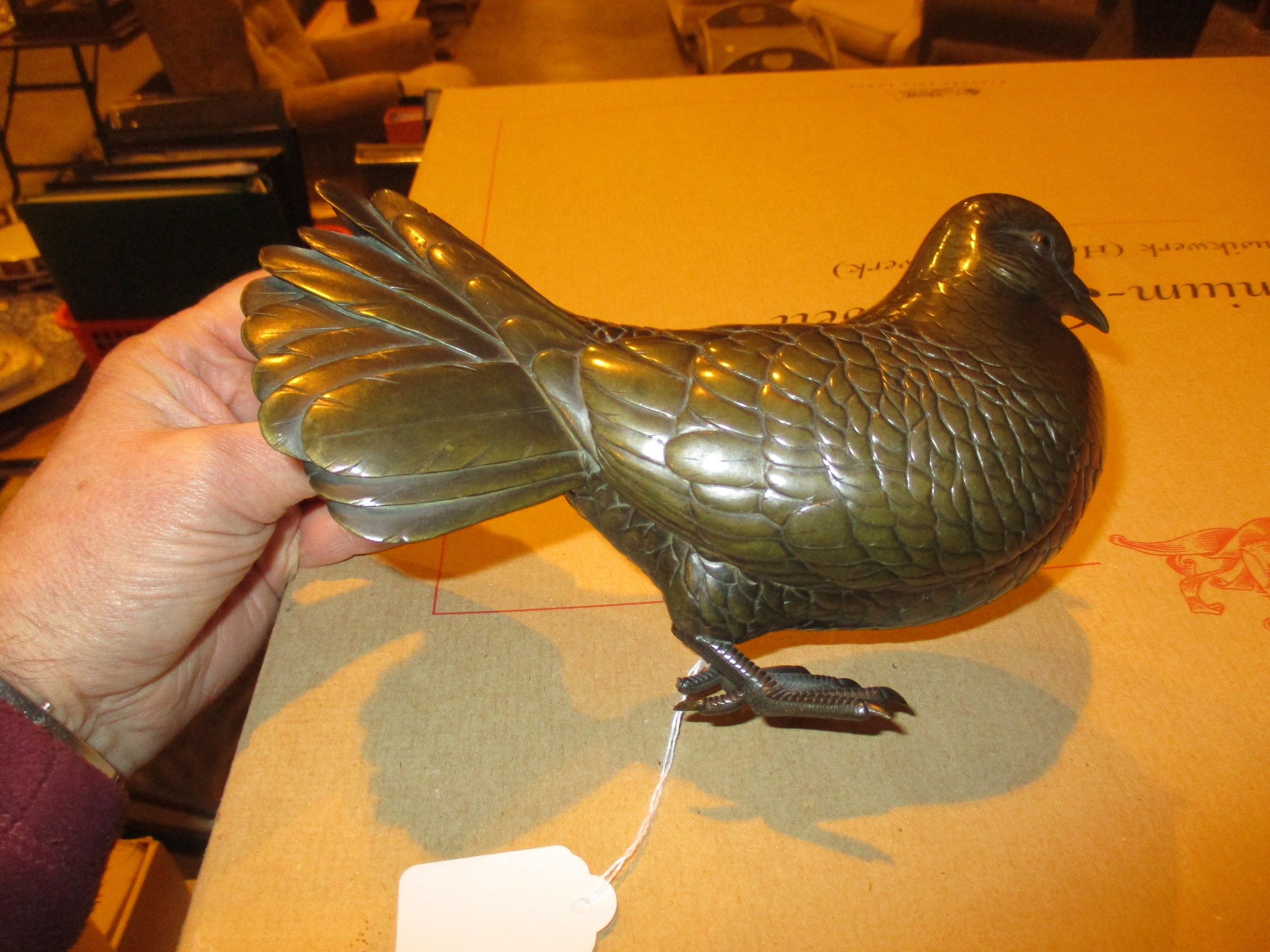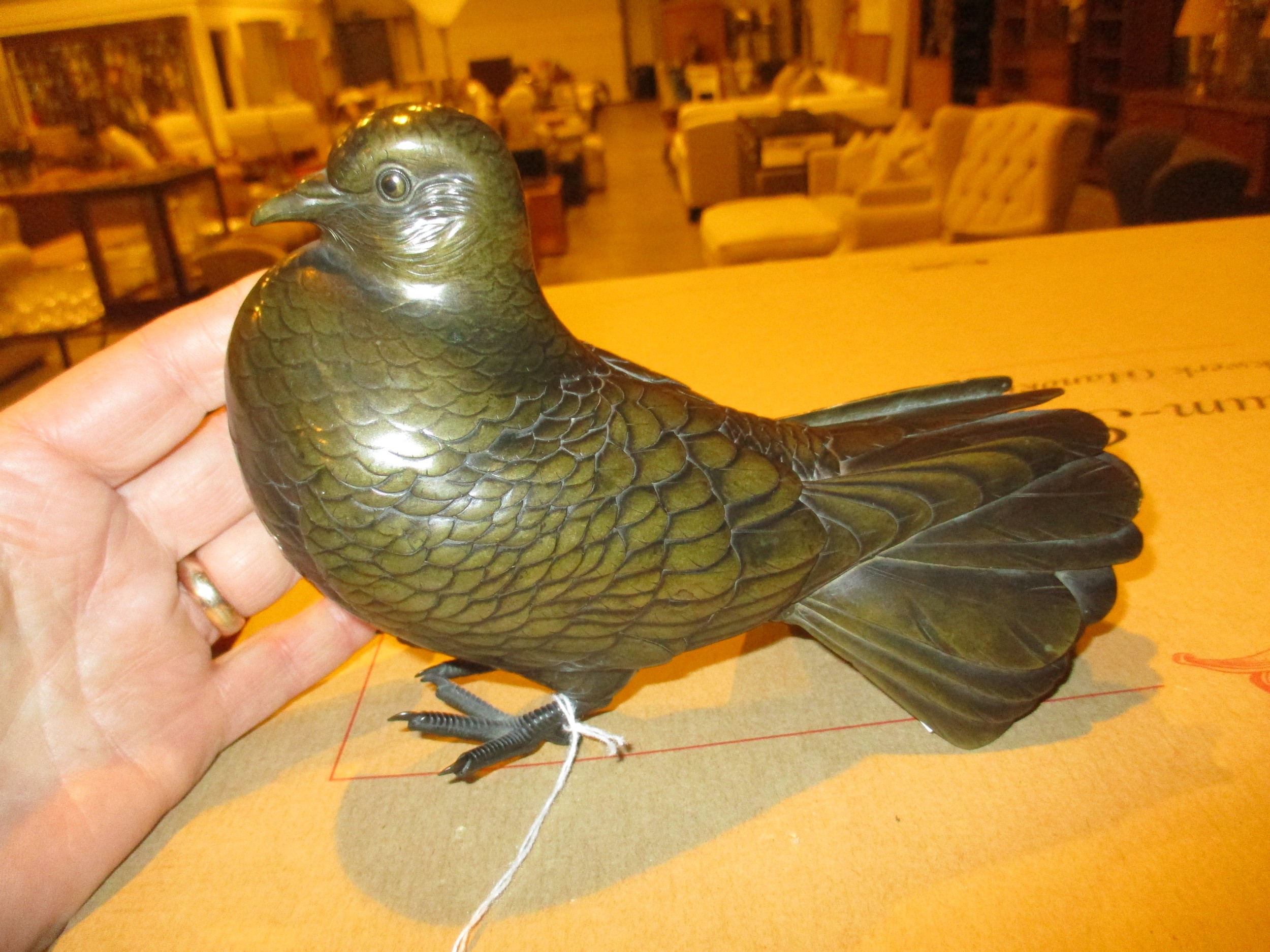 Japanese Bronze Naturalistic Pigeon, 20cm long, 13cm high