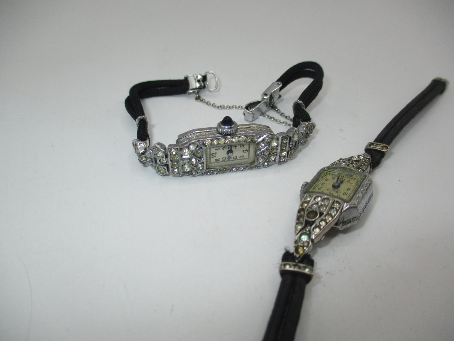 Ladies Art Deco Silver and Diamond Set Cocktail Watch and a Hatis Cocktail Watch