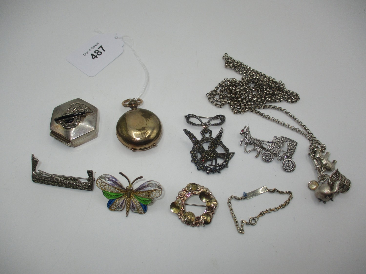 Gold Plated Sovereign Case and Silver Jewellery and a Pill Box