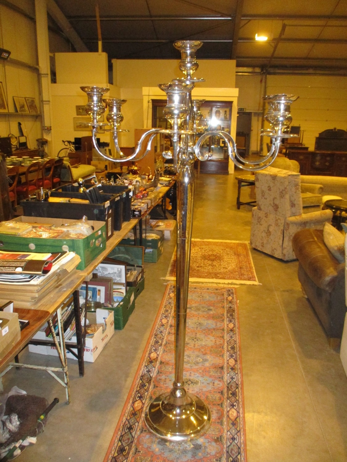 Large Metal Pedestal 6 Branch 7 Light Candelabra, 180cm