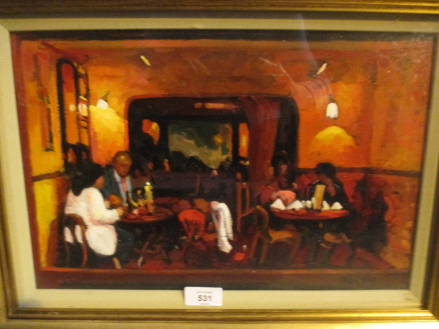 Joe McIntyre, (Scottish, Born 1940), Oil on Canvas Panel, The Red Cafe, 26x39cm