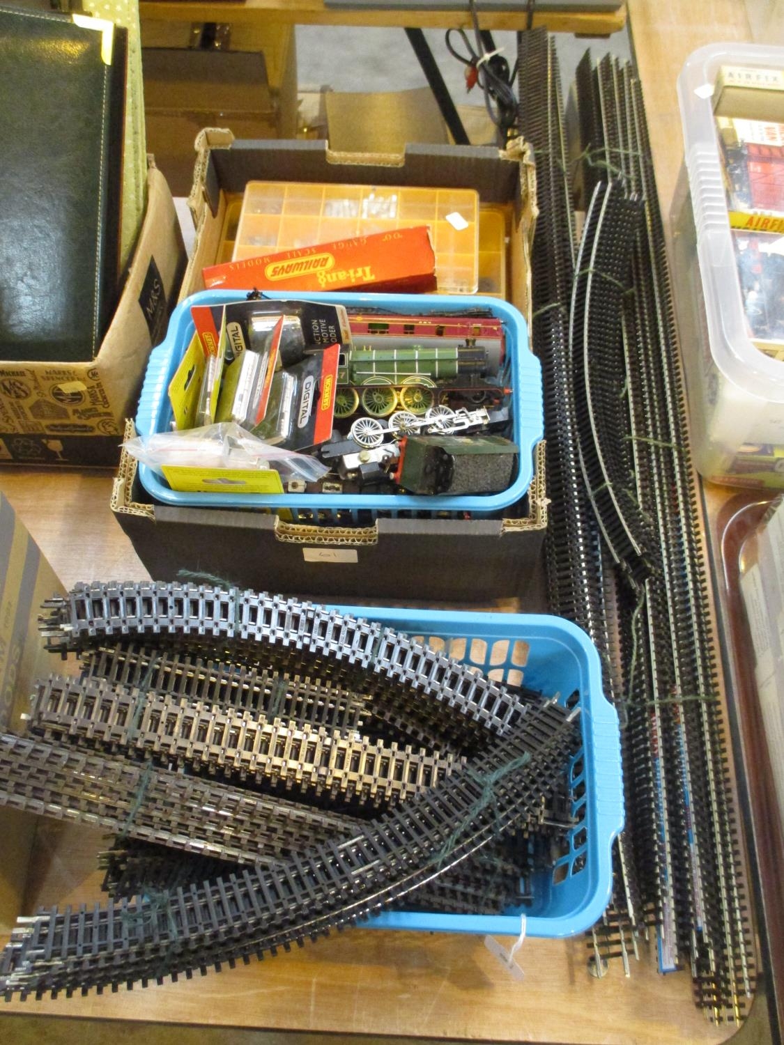 Box of Model Train Parts and Tracks etc