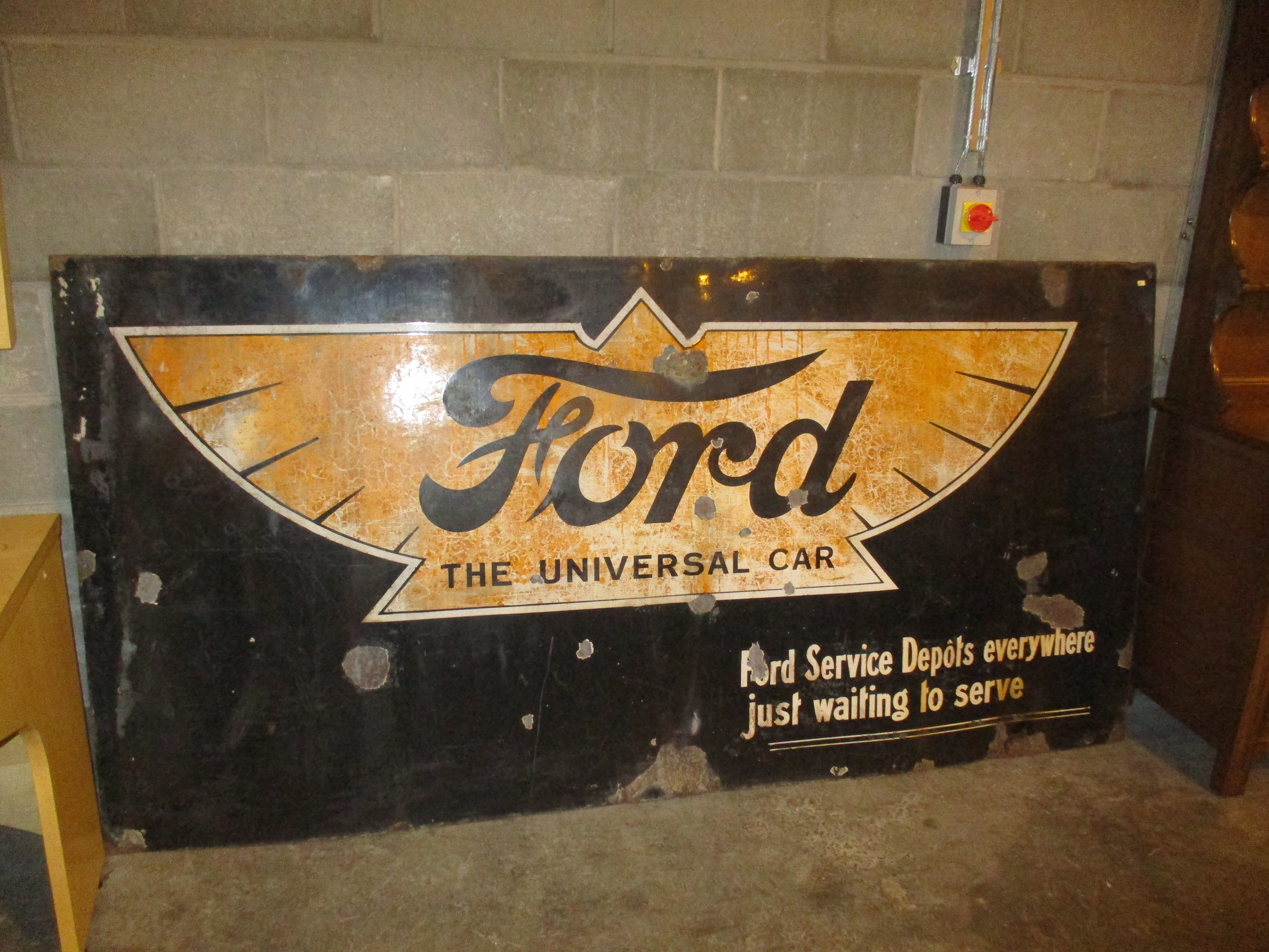 Large Enamel Sign - Ford The Universal Car, Ford Service Depots Everywhere Just Waiting To Serve, 122x243cm
