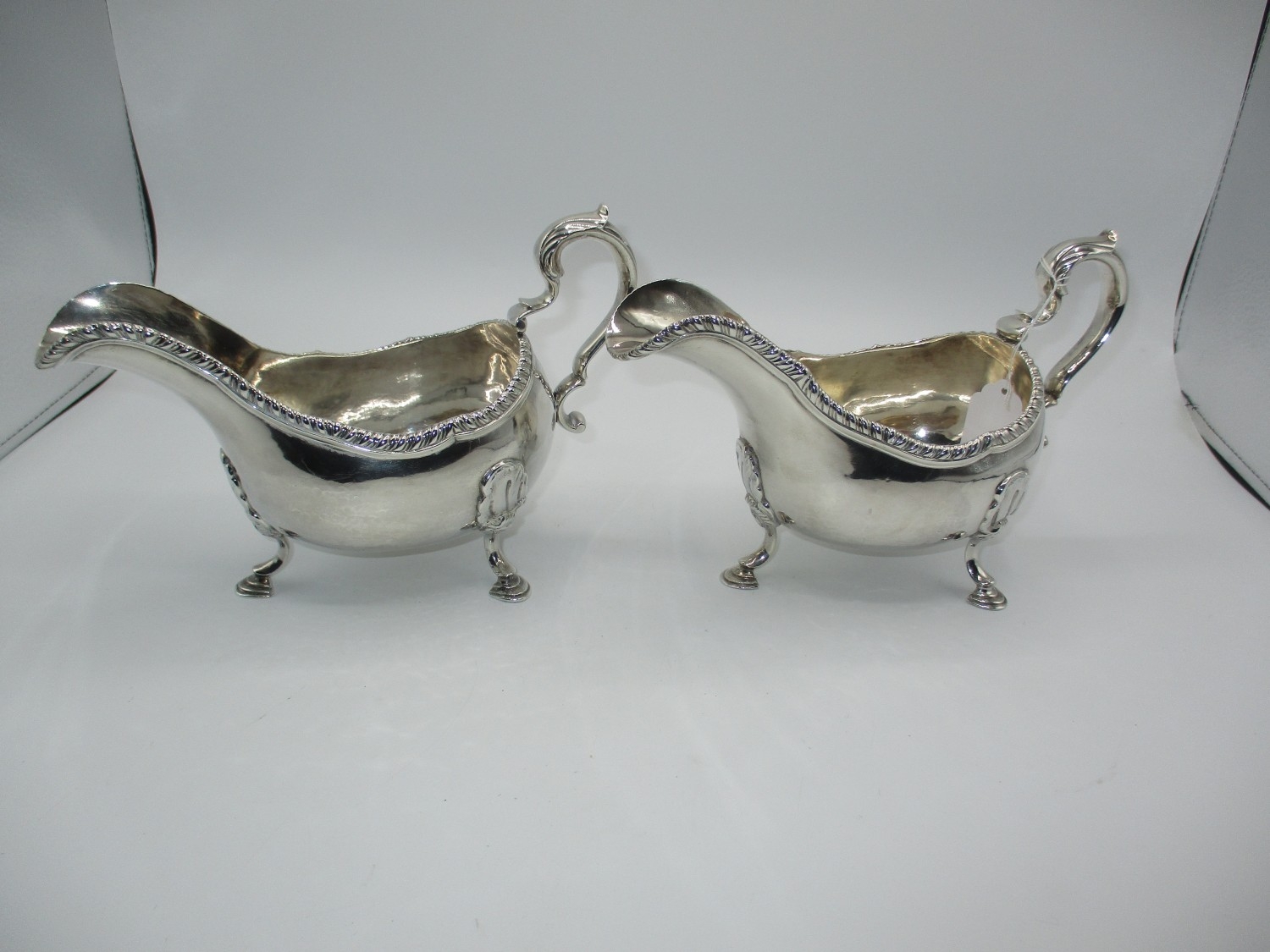 Pair of Silver Sauce Boats, Hallmarks Rubbed, Possibly Dublin 1805, 794g, 21.5cm long