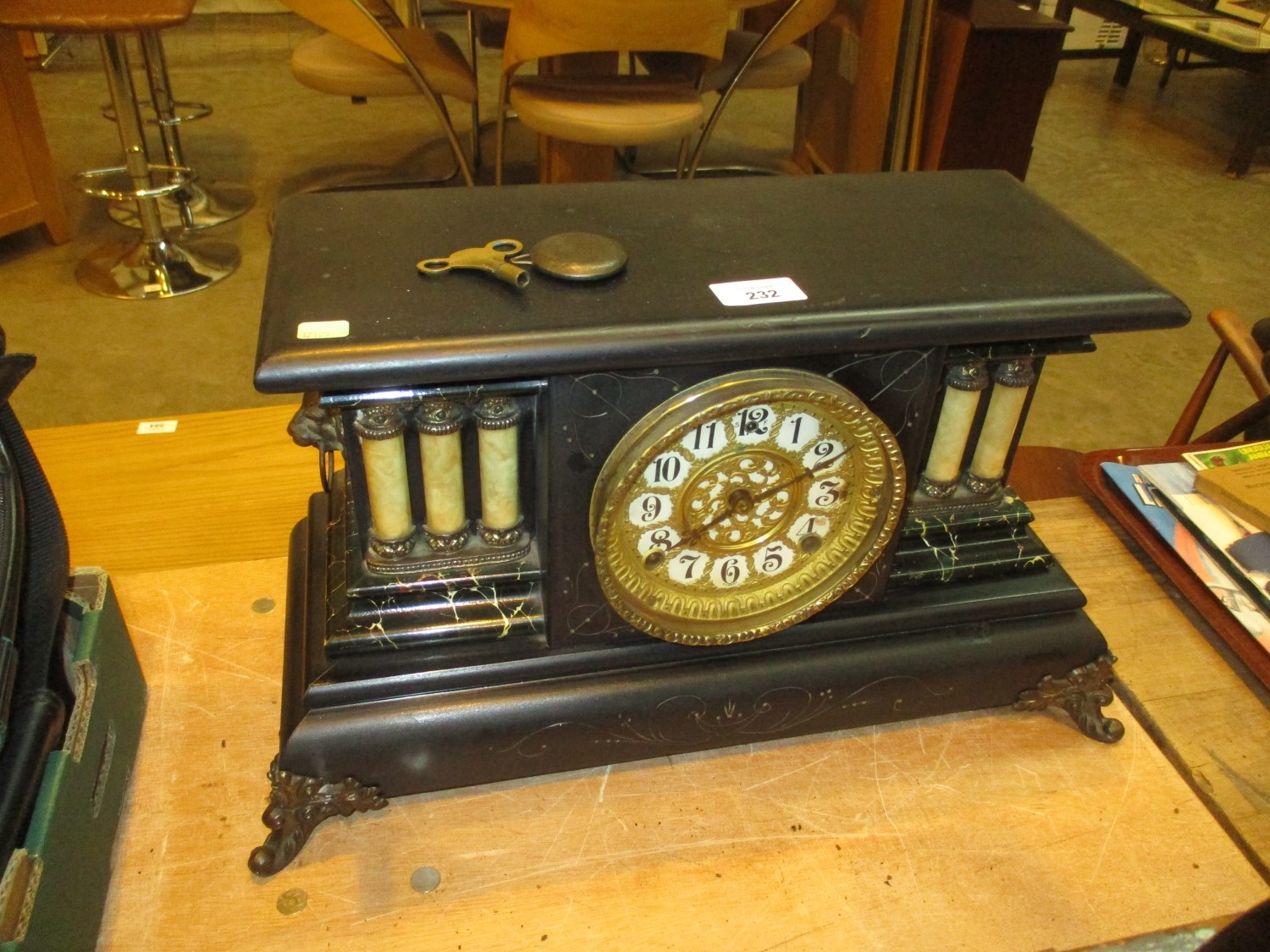 Victorian Mantel Clock with Key and Pendulum