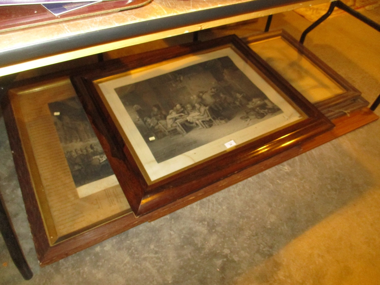 19th Century Rosewood Framed Engraving, Oak Framed Pictures etc