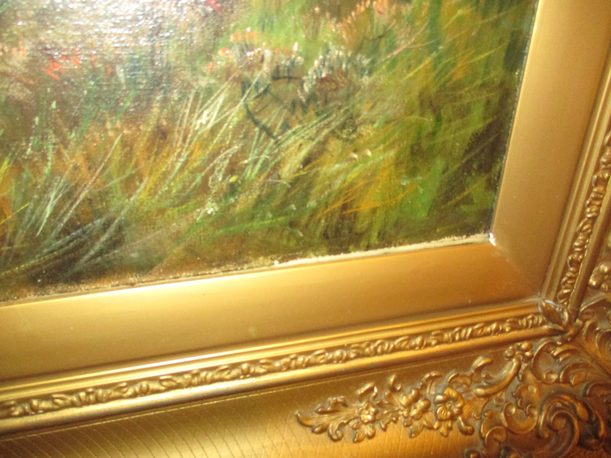 painting and frame in good condition, picture possible restretched, we have no history behind the painting, it was consigned to us from a local vendor
