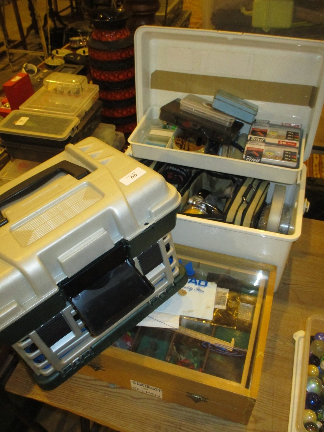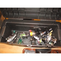 Two Cases and Box with Spinning Reels and Other Items