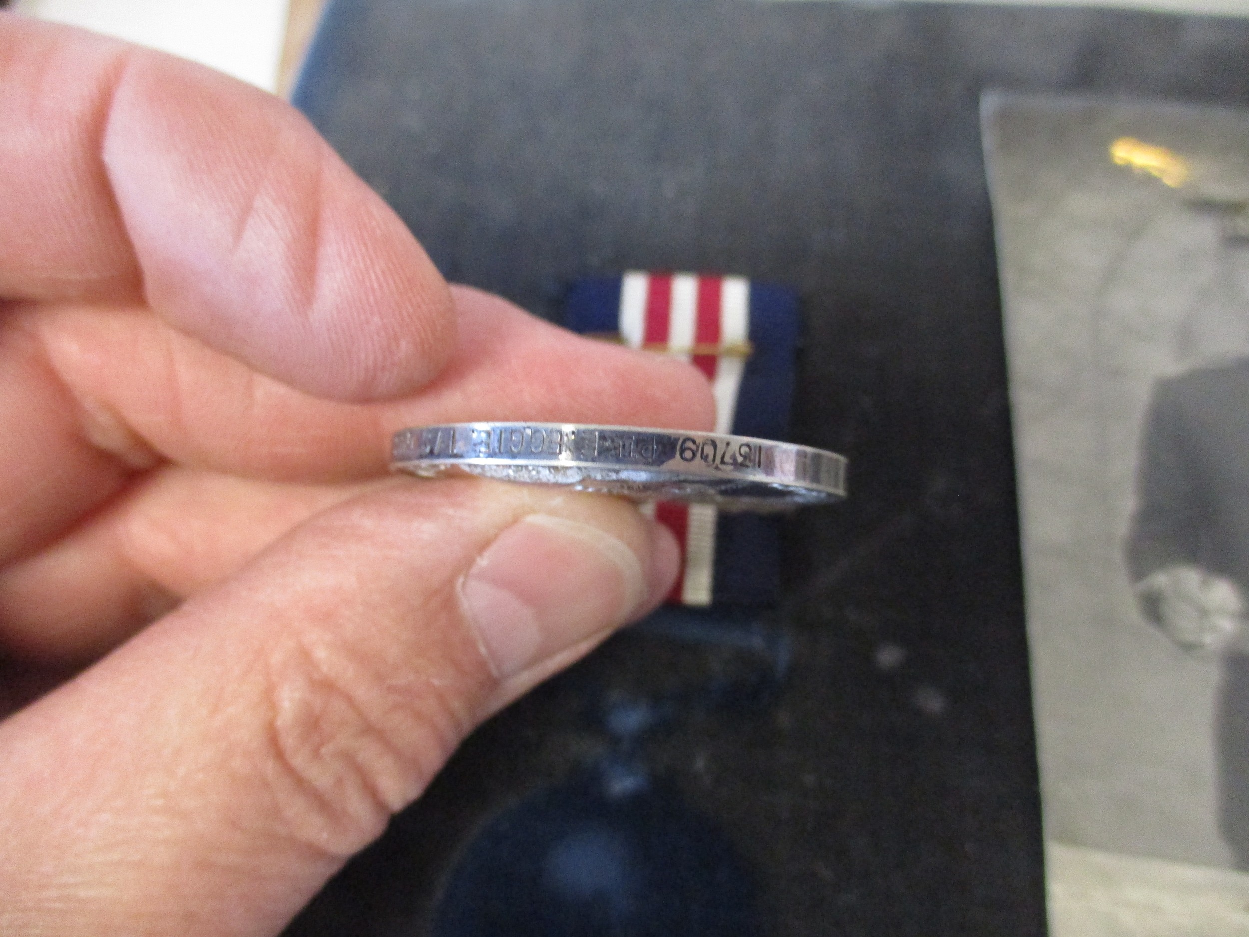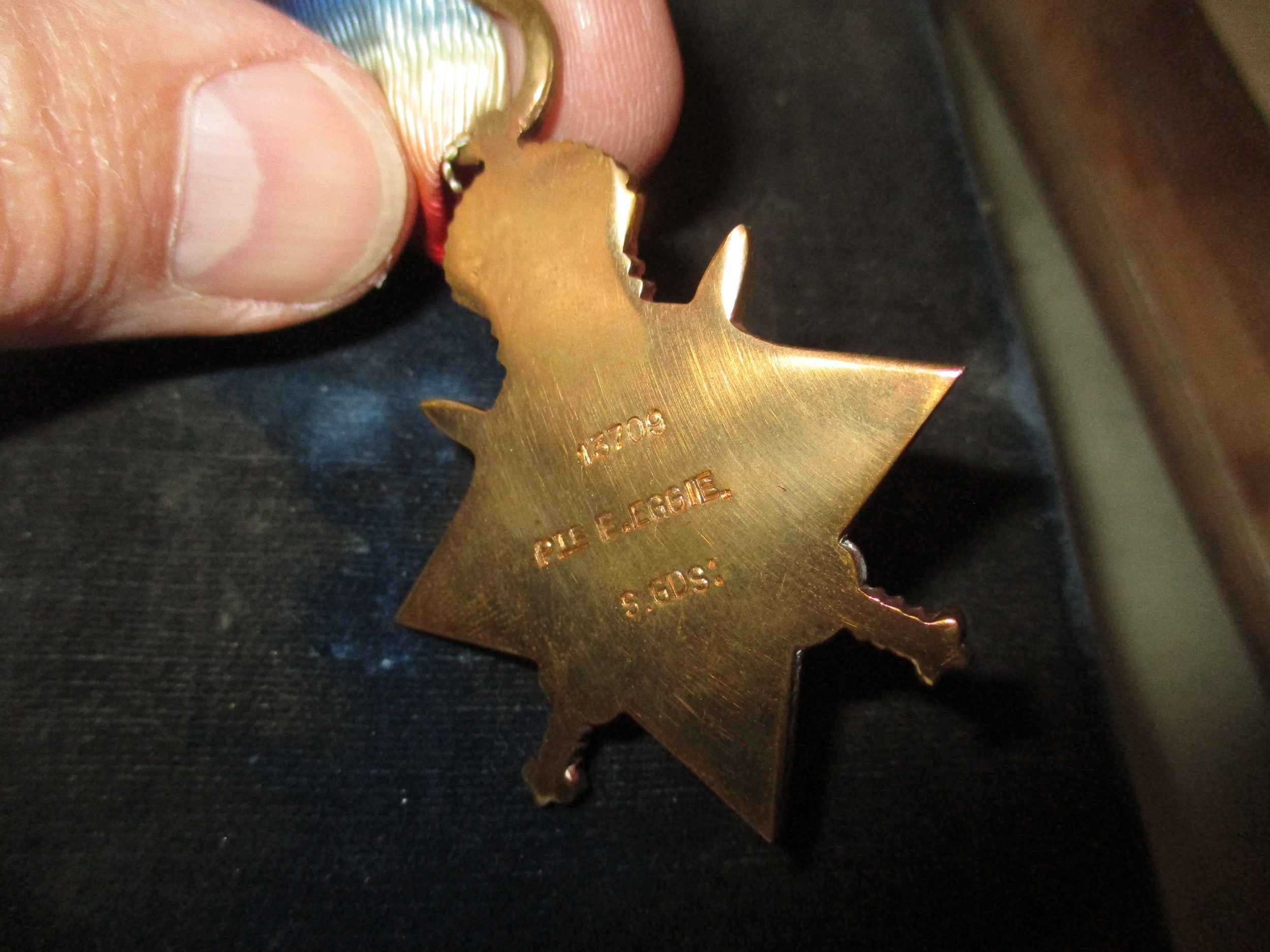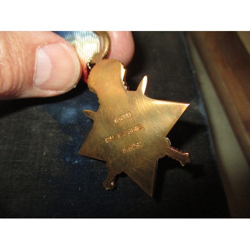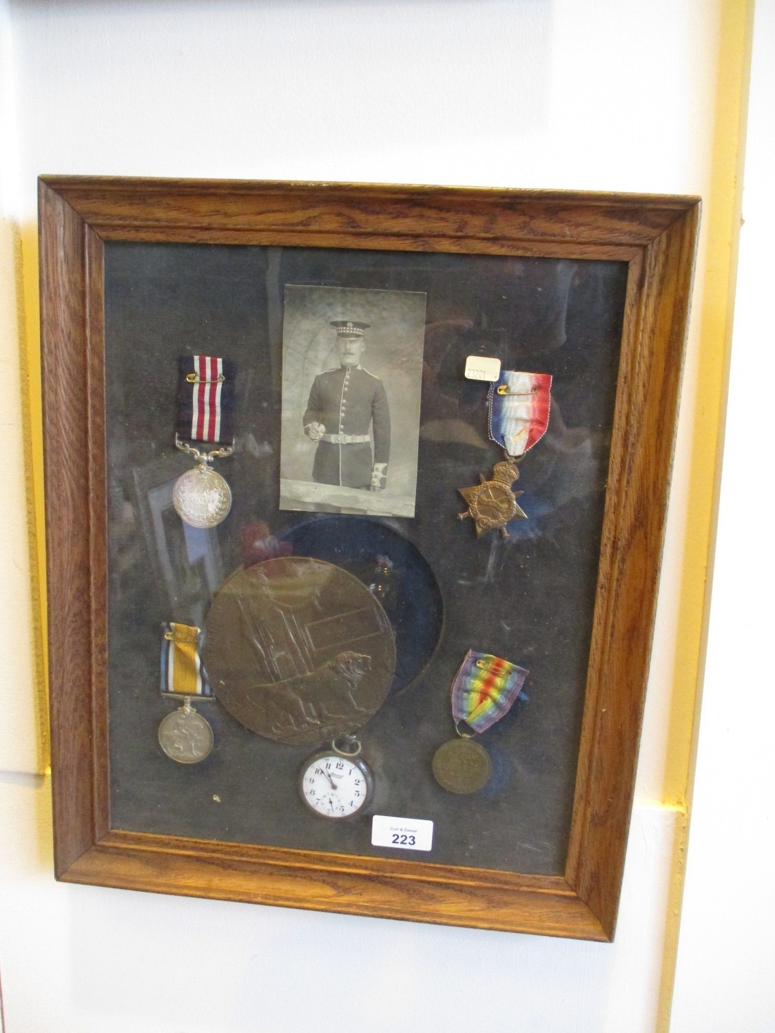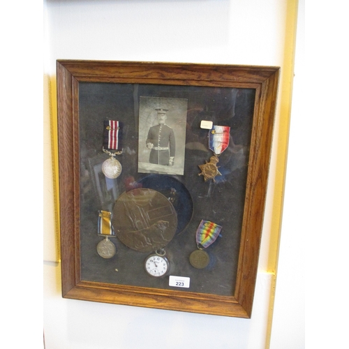 Framed Collection of Ingersol Watch, Medals and Death Penny to Edward Eggie