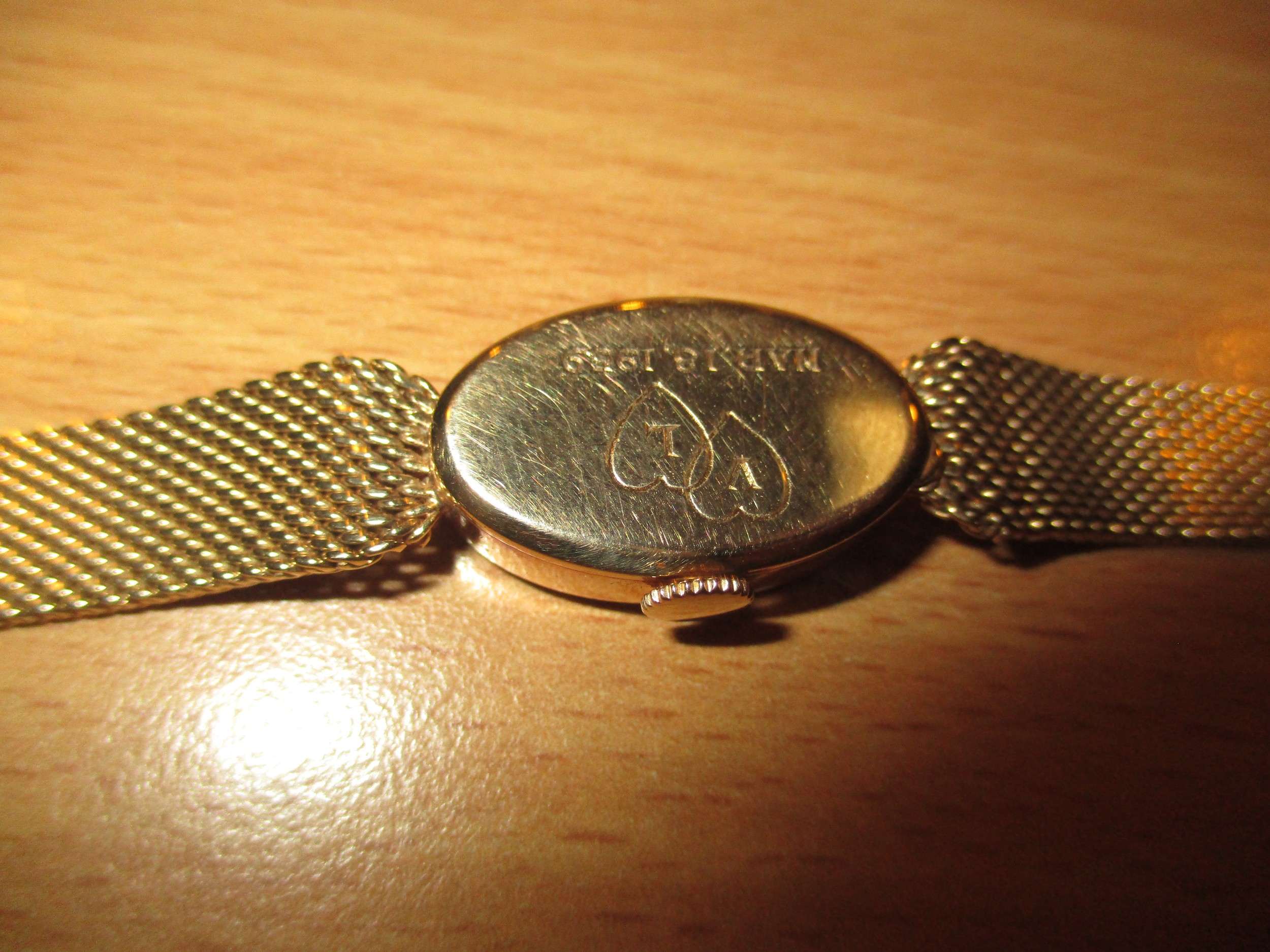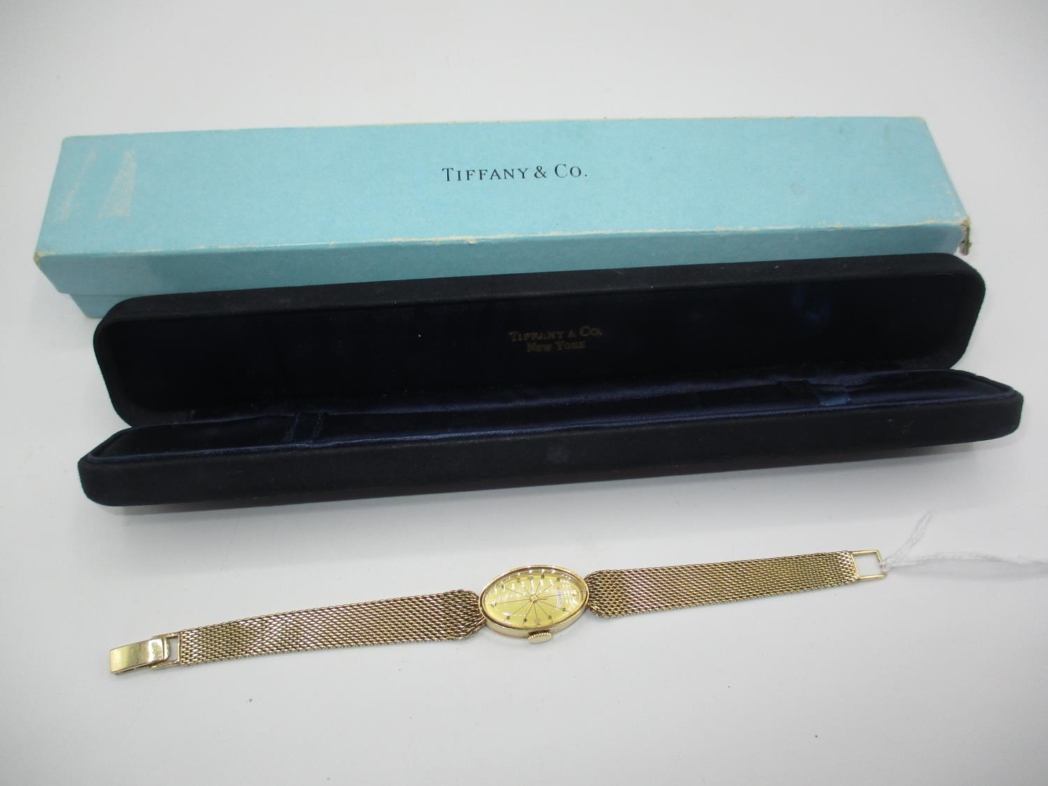 Tiffany & Co. Ladies 14K Gold Bracelet Watch, Presentation Engraved, 25.5g total, with case and box