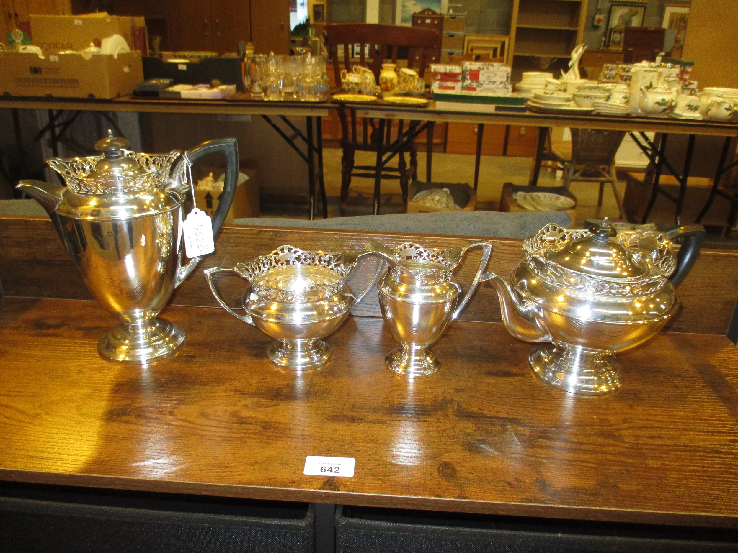Silver 4 Piece Tea Service having Pierced Decoration, London 1910, 2156g total