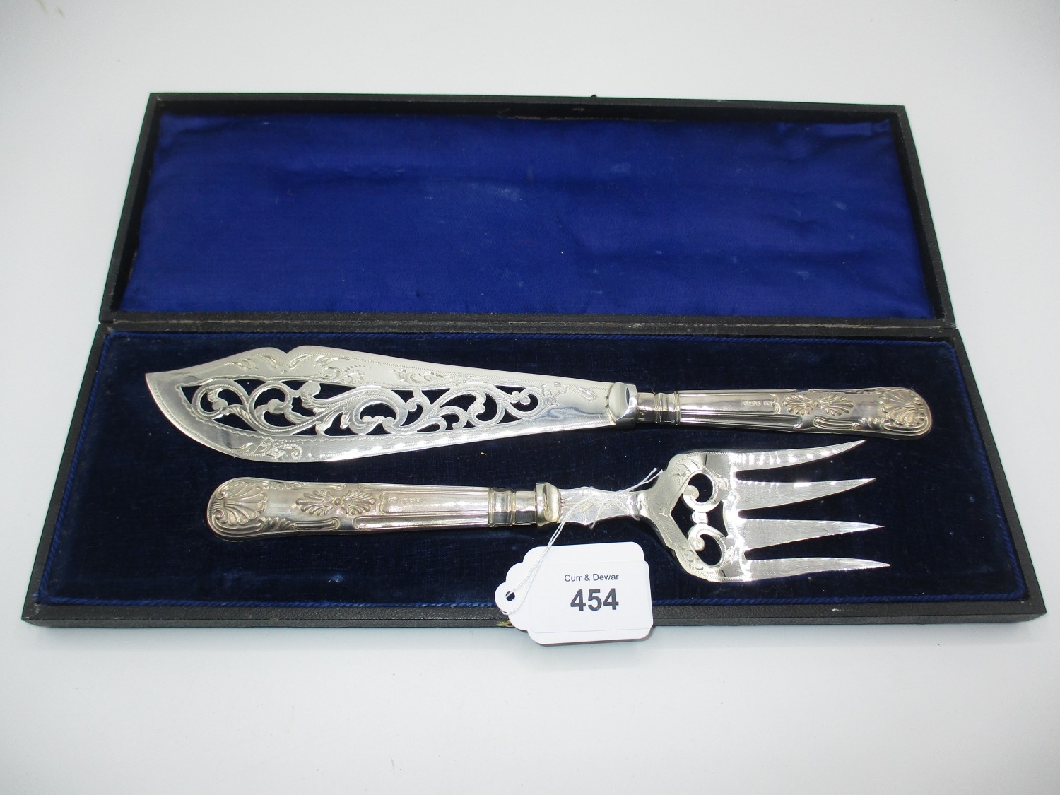 Pair of Silver Handle Fish Servers, Sheffield 1908, with fitted case